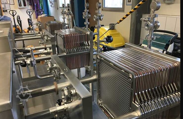 Installatie 1: 4,80 m² filteroppervlak, 9,60 L vaste-stofinhoud, 40 platen, productcontactdelen deels 1.4435, appendages & opstijgleidingen los bijgevoegd