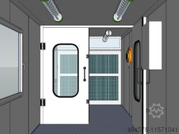 Een container met twee zones, verdeeld in een spuiterij en een voorbereidingszone