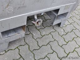 Uitrusting Mangat / koepel in bovenverdieping (DN 400) Uitrusting Schijfkraanuitlaat DN40 DIN 11851 Opmerkingen Opmerkingen Opmerkingen Frame gemaakt van V2A; deuken in de containers mogelijk; schroefverbindingen van het mangatdeksel gedeeltelijk incompleet (bij één container ontbreekt het mangatdeksel); handhendels van de schijfkranen verbogen (sommige schijfkranen of handhendels ontbreken ook) laatst beoogd gebruik Fruitsapindustrie
