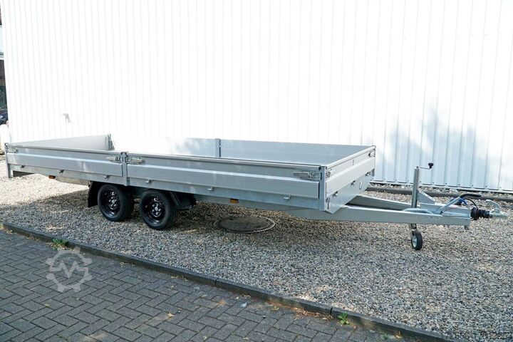 Toestand: nieuw, asconfiguratie: 2 assen, totaalgewicht: 3.500 kg, leeggewicht: 834 kg, maximaal laadgewicht: 2.666 kg, laadruimte inhoud: 3,4 m³, laadruimte lengte: 5.050 mm, laadruimtebreedte: 2.200 mm, laadruimtehoogte: 300 mm, kleur: zilver, bouwhoogte: 940 mm, werkbreedte: 2.260 mm, Hydraulica, automatische achteruitrijfunctie, vuurverzinkt, ongeremd, * DIRECT BESCHIKBAAR * Technische gegevens: - Type: Nieuw voertuig met 2 jaar TÜV vanaf eerste registratie - Beschikbaarheid: Direct beschikbaar!! - TÜV: 2 jaar - Bodem: multiplex antislip plaat - Toelaatbaar totaalgewicht: 3.500 kg - Leeggewicht: 834 kg - Laadvermogen: 2.666 kg - Binnenmaten: 505 x 220 x 30 cm (L x B x H) - Buitenmaten: 661 x 226 x 94 cm - Laadvloerhoogte: 64 cm - Banden: 195/50R13C stalen velg - Rem: ja - Neuswiel: ja, automatisch - Inclusief voertuigpapieren (kentekenbewijs) - 100 km/u INCLUSIEF Standaarduitrusting: - Speciaal ontworpen scharnieren aan de zijwanden voor eenvoudige montage van een laadnet - 30 cm hoge aluminium zijwanden met robuuste geïntegreerde sluitingen - Voorwand scharnierend. Bindhaken op het chassis. - U-profiel aan de achterzijde voor eenvoudig aanleggen van oprijplaten - Geanodiseerde dubbelwandige aluminium zijwanden - Alle zijwanden neerklapbaar en afneembaar - Stalen hoekrongen afneembaar - Multiplexvloer met antisliplaag - Zeer stabiel, gelast stalen frame - Frame volledig thermisch verzinkt (dompelbad) - Veel dwarsliggers voor hoge puntbelasting - Extra doorlopende langsliggers gelast - Alle dwars- en langsliggers liggen op de bodem - 12 geïntegreerde sjorogen (1000 DaN/kg) TÜV-gecertificeerd! - Sjorhaken aan scharnierdelen - Automatische achteruitrijfunctie - Knott-oplooprem en parkeerrem - Robuuste excenter sluitingen - Versterkte, stevig geboute V-dissel - 13-polige stekker - Ruim bemeten veiligheidsverlichting - Verlichting achter verzonken gemonteerd, met geïntegreerd mistachterlicht - Automatisch neuswiel in het midden Extra uitrusting inbegrepen in de prijs: - Laag chassis met 195/50R13C banden, laadvloerhoogte ca. 64 cm - Parabolische vering incl. schokdempers, gemonteerd voor 100 km/u i.p.v. rubbergeveerde assen - Parabolische as met schokdempers voor maximaal rijcomfort! Optioneel verkrijgbaar toebehoren: - Hoge gaaswand voor, 70 cm - Zeil + huif in verschillende hoogtes - Steunen, tralies, zijwandverhogingen, netten etc. Nieuw voertuig met garantie en TÜV. Wij bieden u graag passende financiering aan! Beschrijvingen en foto's zijn auteursrechtelijk beschermd! Meer dan 800 aanhangers direct bij ons beschikbaar! Wij zijn al meer dan 30 jaar Brian James / Humbaur / Hapert / Unsinn / Cheval Liberte / Koch / Debon / Stedele / TPV / Tohaco / Vezeko / Variant / Vlemmix specialist & reparatiewerkplaats - Levering in geheel Duitsland mogelijk tegen meerprijs! Anhänger Zentrum BAUMANN GmbH Dinxperloer Str. 389 46399 Bocholt - Fouten, vergissingen en tussentijdse verkoop voorbehouden -