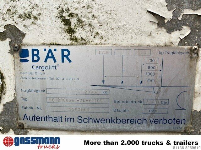 Opbouw: Koelaggregaat: Frigo Block HK 13, -10 °C, elektrisch, laadklep aluminium Bär RC 2000 SA.